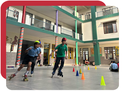 The school has 1.5 acre sports complex. Our State-of-the-Art Sports Complex is designed to nurture athletic talent and promote physical well-being among students. It features a range of modern indoor and outdoor facilities including a football ground, basketball and tennis courts, a skating rink, and a synthetic running track. The complex also houses a well-equipped gymnasium and indoor games area for chess, table tennis, and more. Professional coaches guide students in various sports, encouraging discipline, teamwork, and excellence.